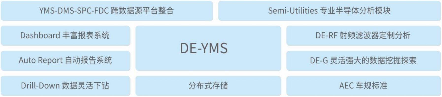 同时,DE-YMS基于分布式数据库,具备友好的工具使用界面,为客户提供海量数据的有效存取并整合的快捷页面,以及方便灵活的交互分析服务,实现数据资源的统一管理和芯片良率的直观表达,极大地提高工程师的工作效率。